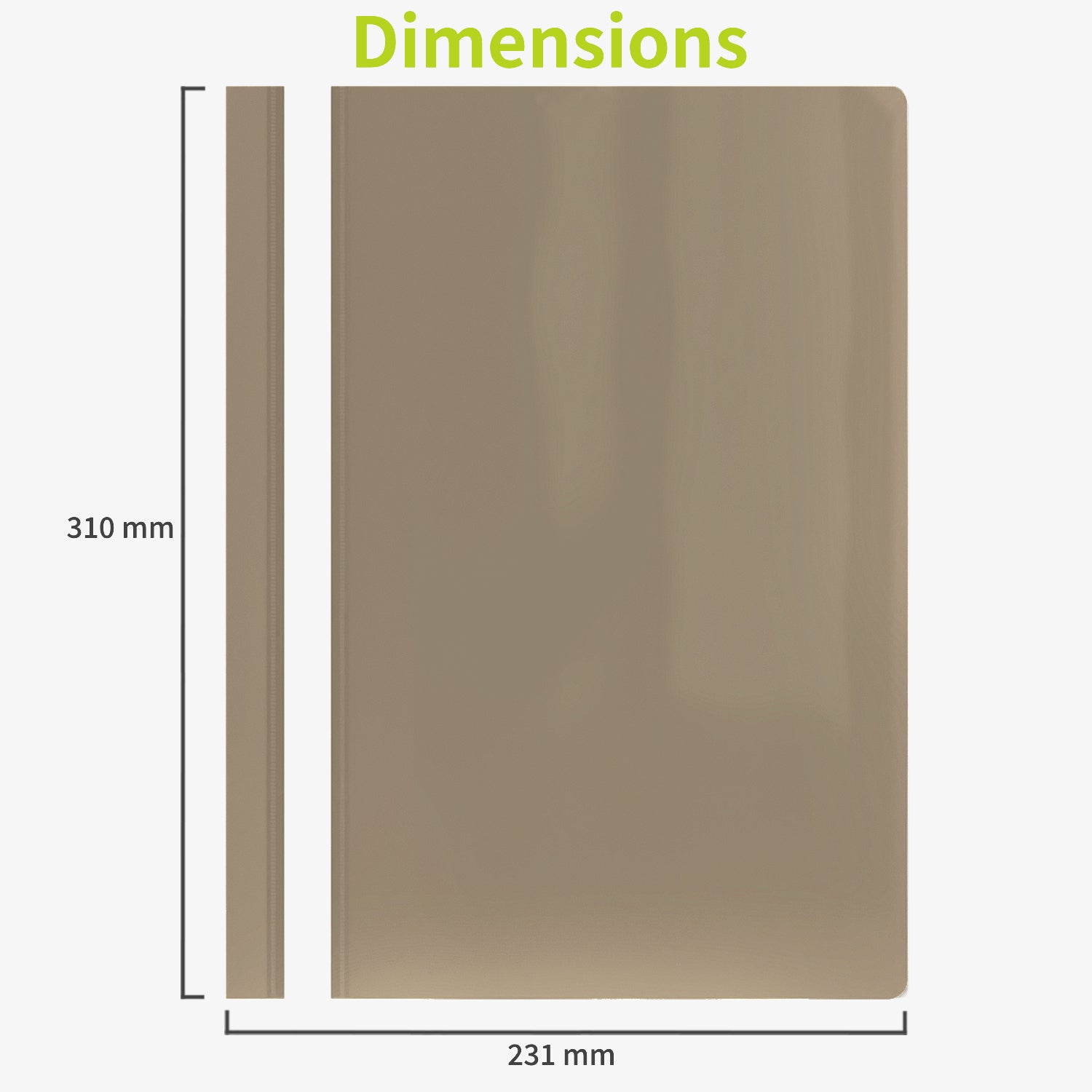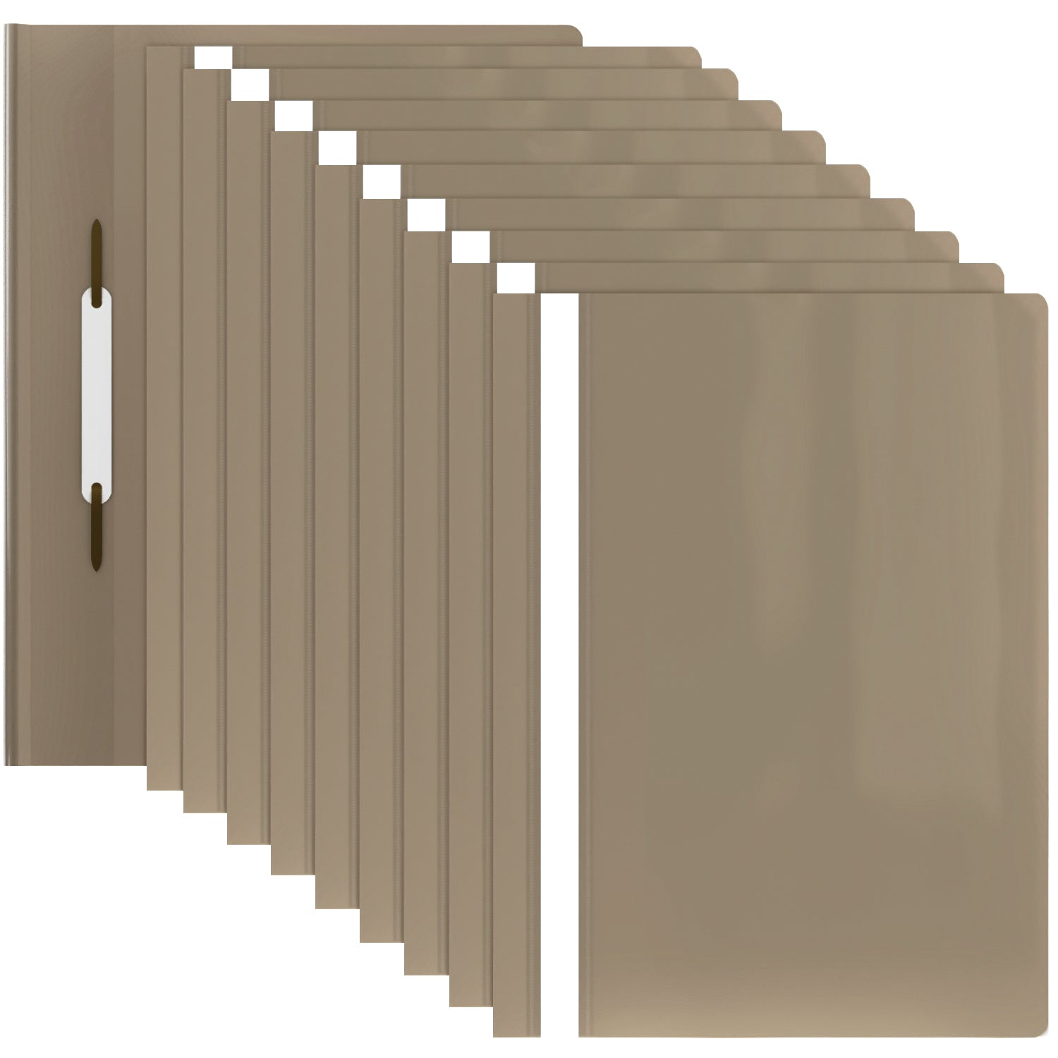 Lot de 10 chemises rapport A4 légères en PP avec couverture avant transparente et dos kaki pastel, capacité jusqu’à 70 feuilles.