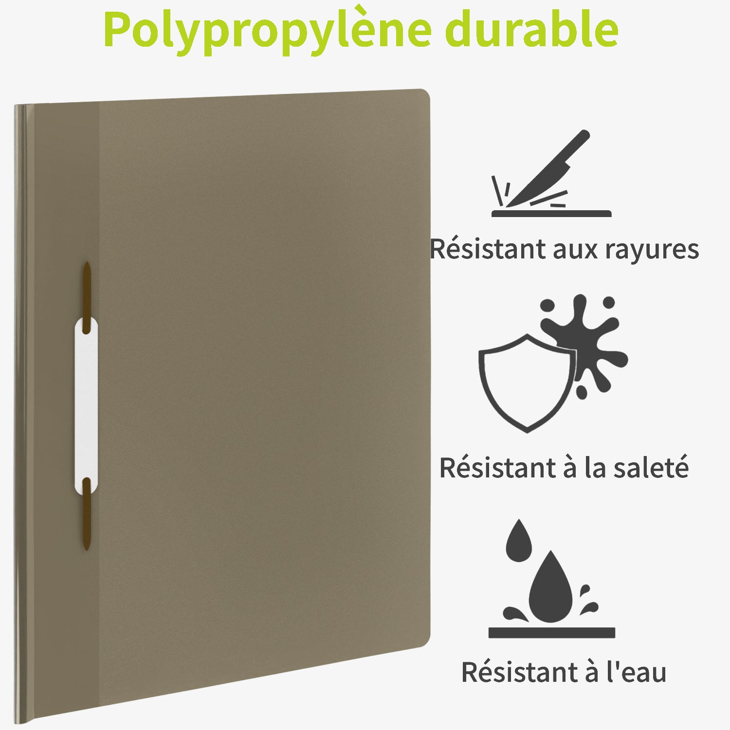 ACROPAQ Lot de 10 Chemises Rapport A4 PP – Kaki Pastel