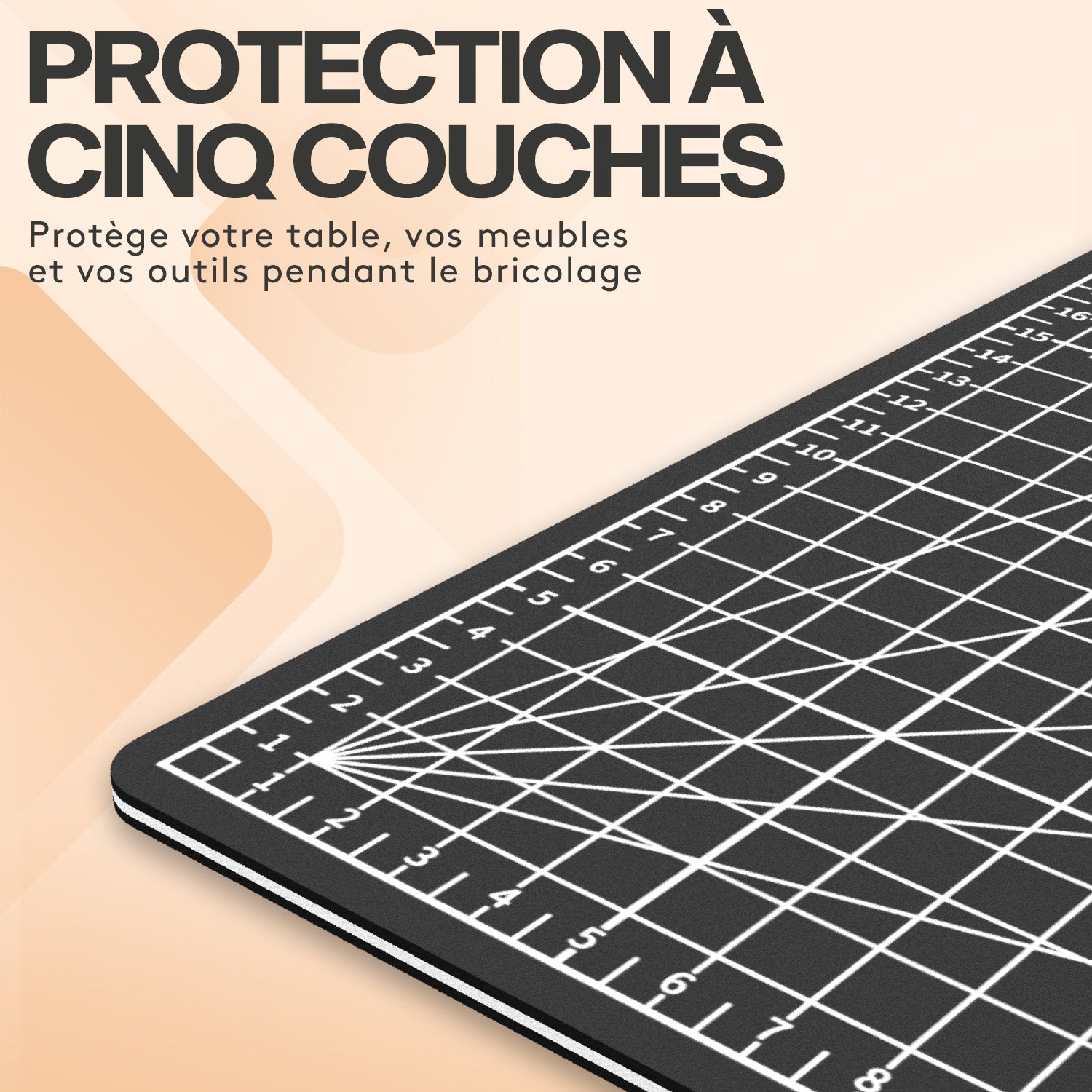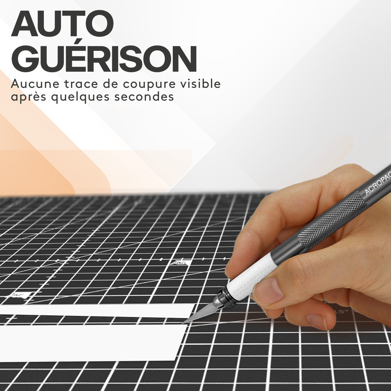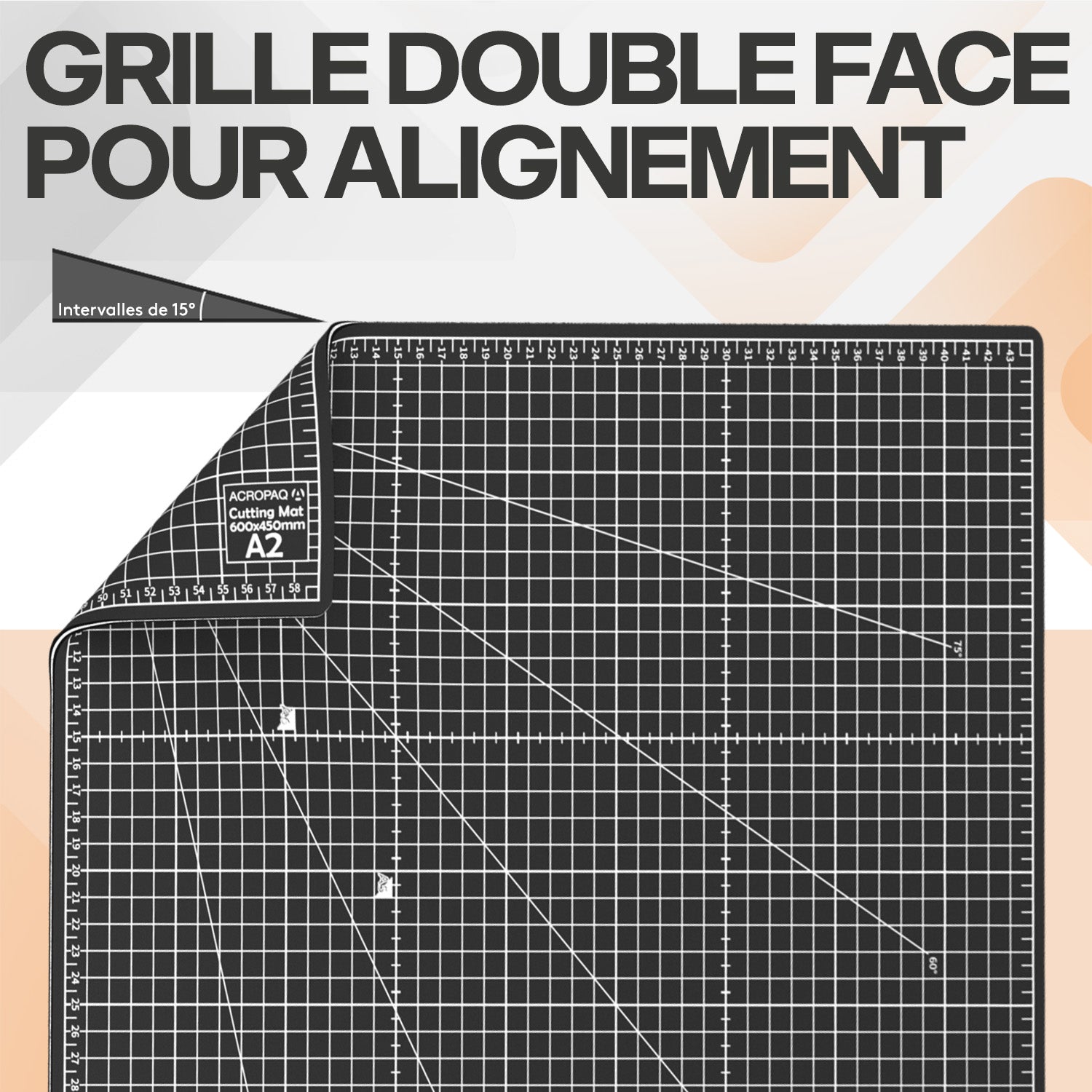 ACROPAQ AM2K Tapis de découpe A2 – Auto-cicatrisant, Double face, 5 couches PVC – Noir