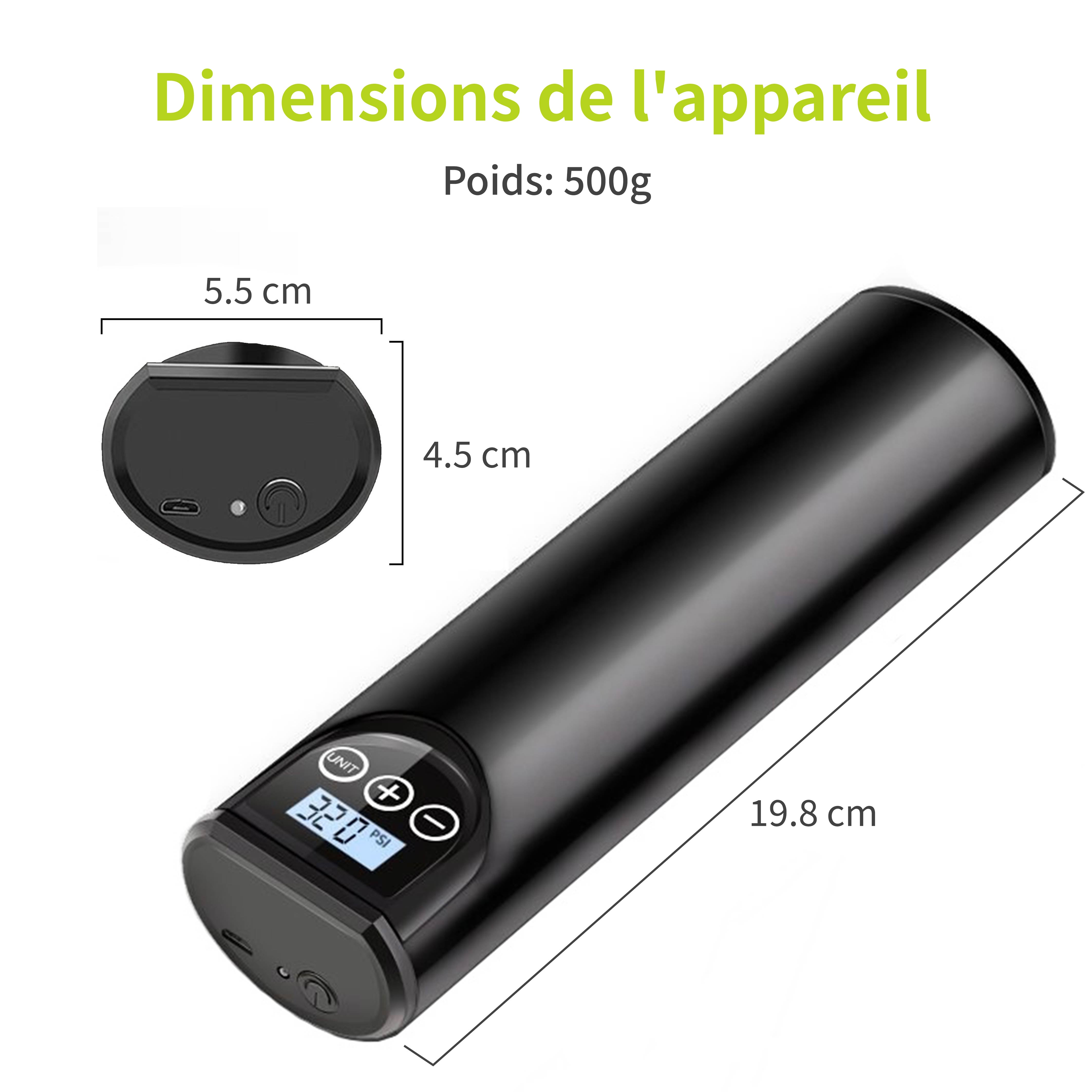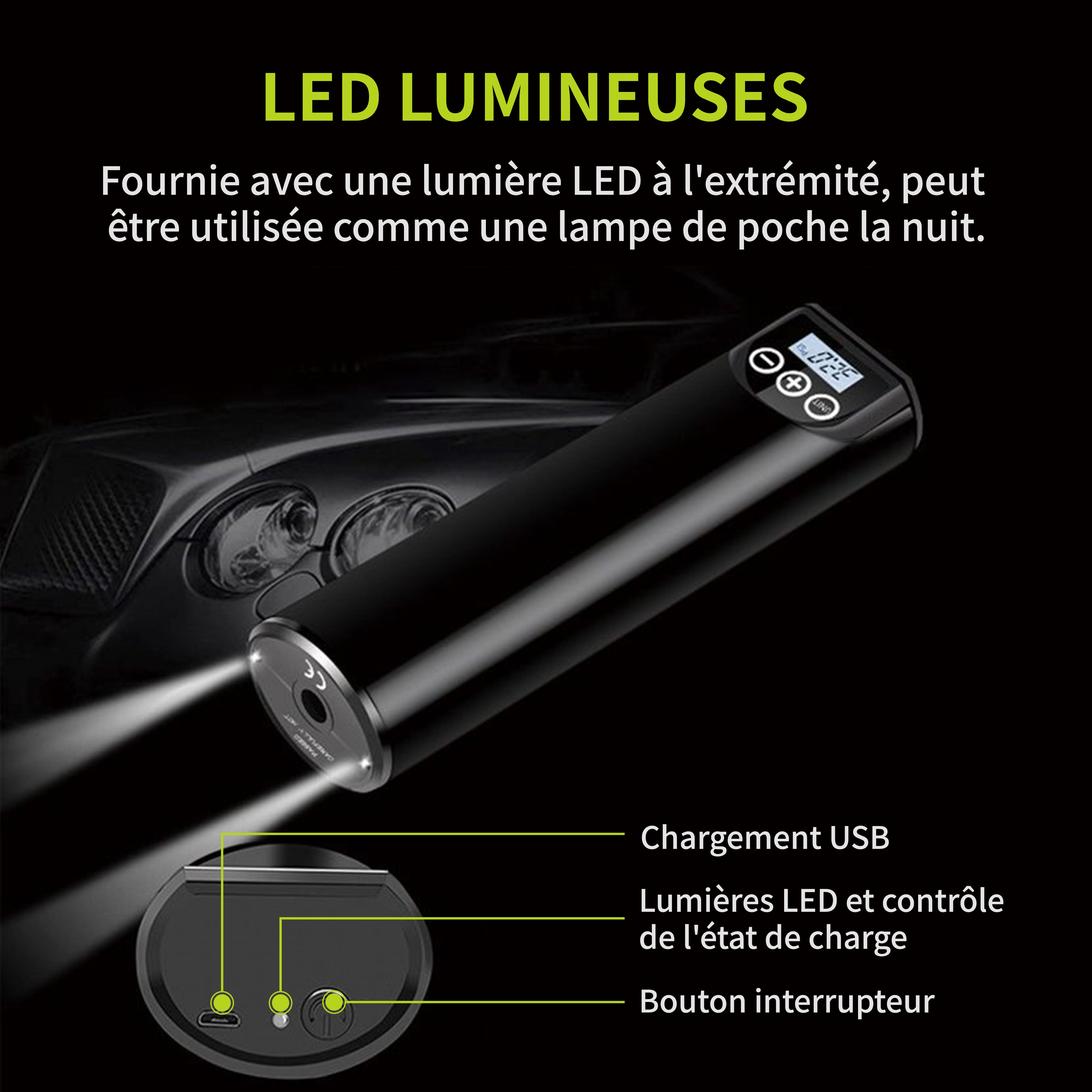 Ce compresseur d'air compact et léger est idéal pour les déplacements et peut être facilement rangé dans la voiture, la moto ou le vélo.
