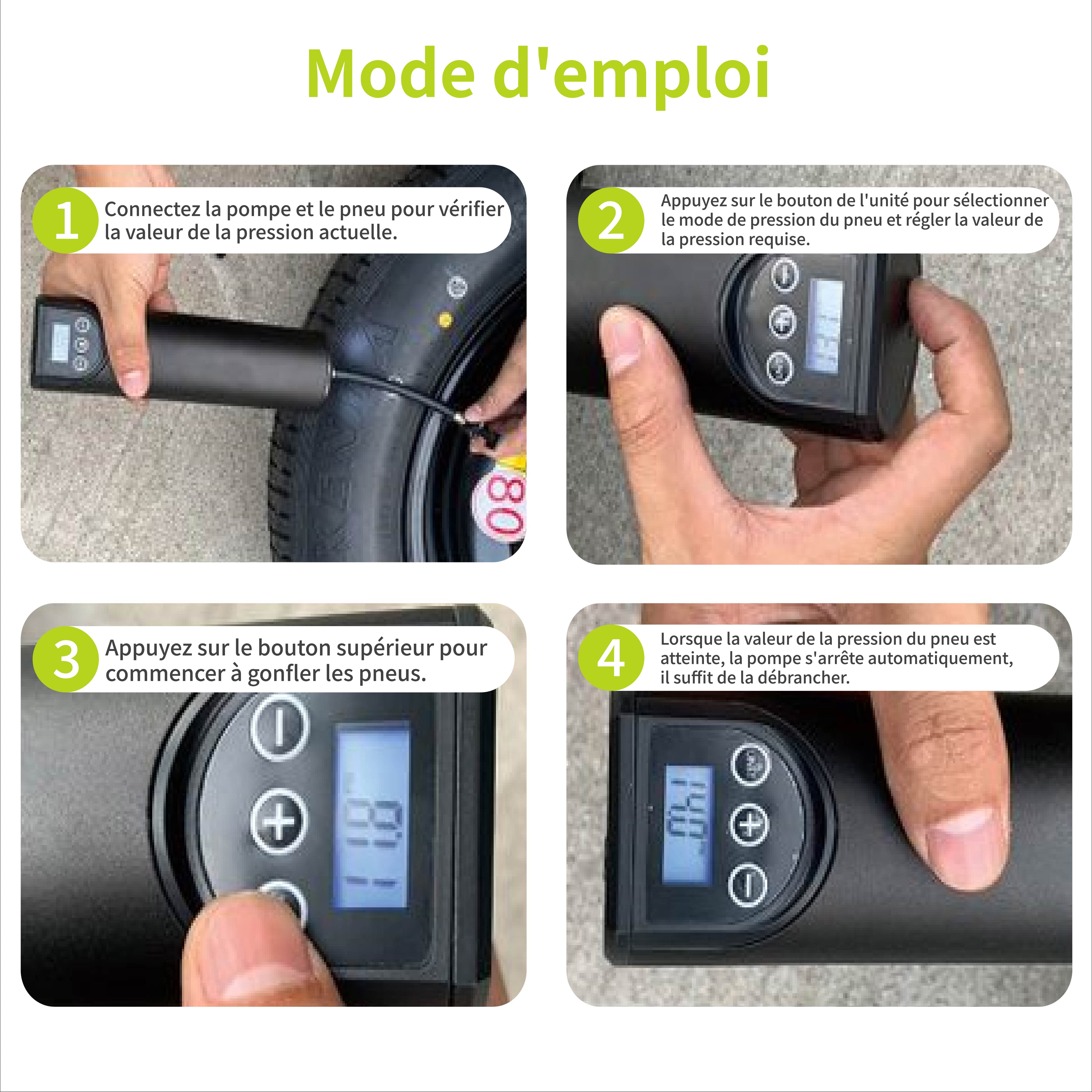 L'écran numérique intégré permet de surveiller la pression des pneus en temps réel pour éviter la surpression ou la sous-pression.