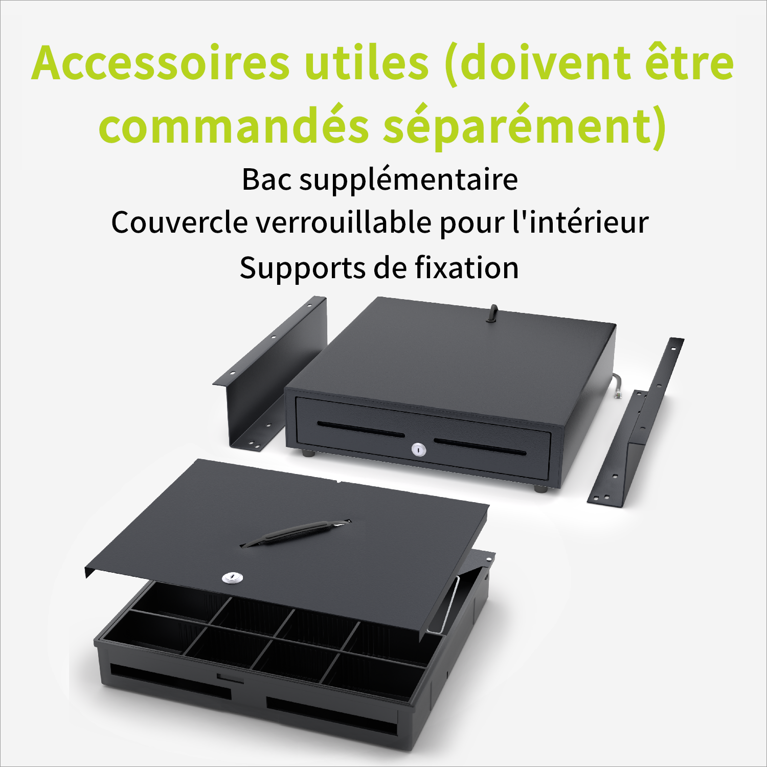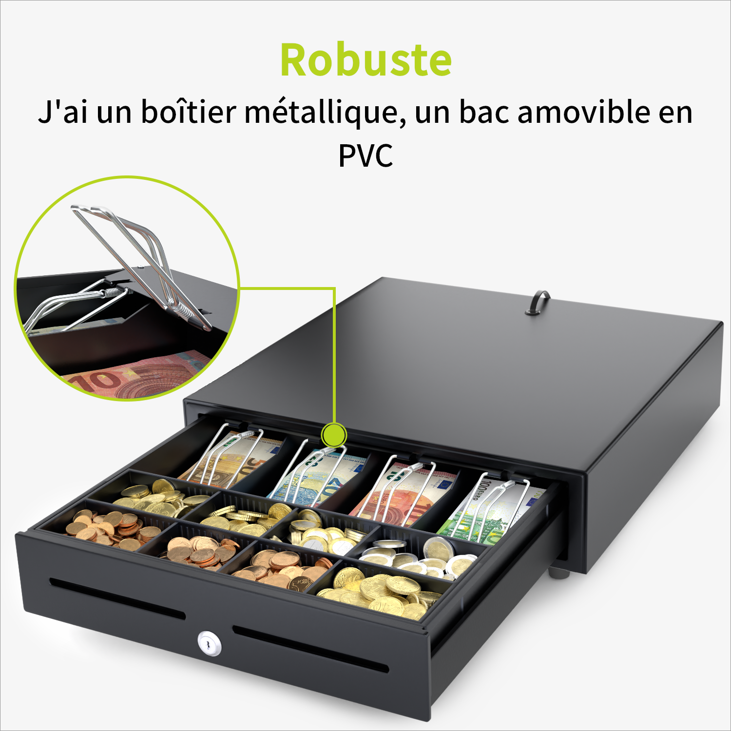 Le tiroir-caisse est équipé d'une serrure sécurisée et est livré avec 2 clés.