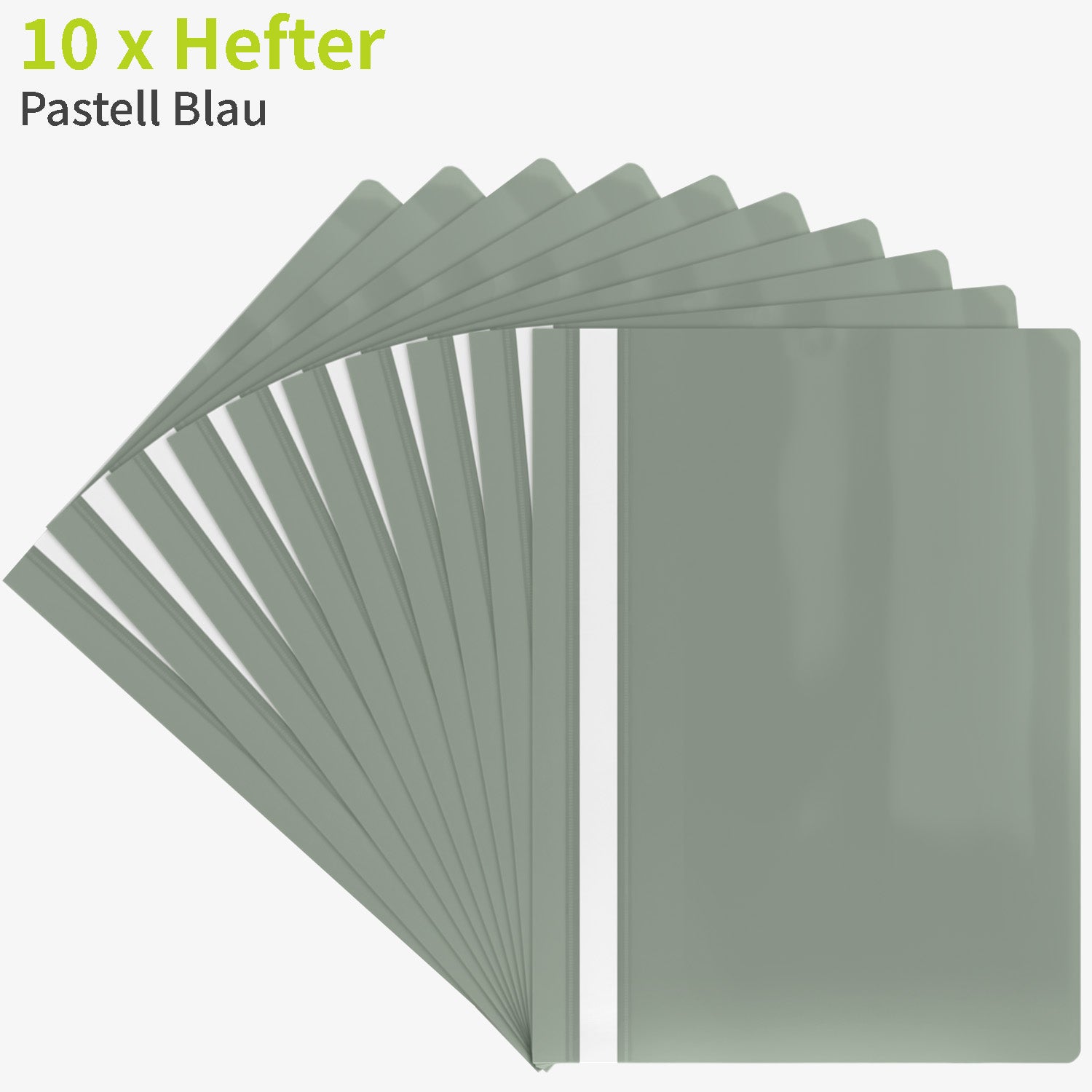 Zehn A4-Berichtsmappen in Pastellblau für übersichtliches Archivieren.