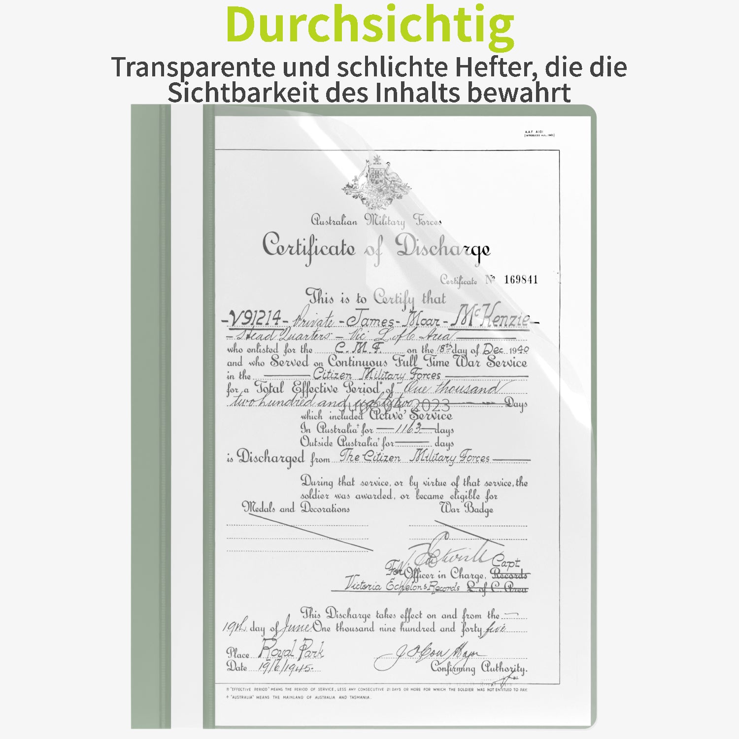 0.12 mm transparente PP-Front zur sofortigen Dokumenteneinsicht.
