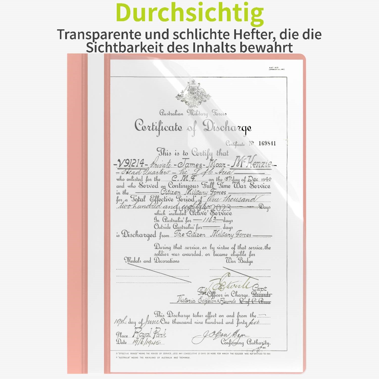0.12 mm klare PP-Front für schnelle Dokumenteneinsicht.