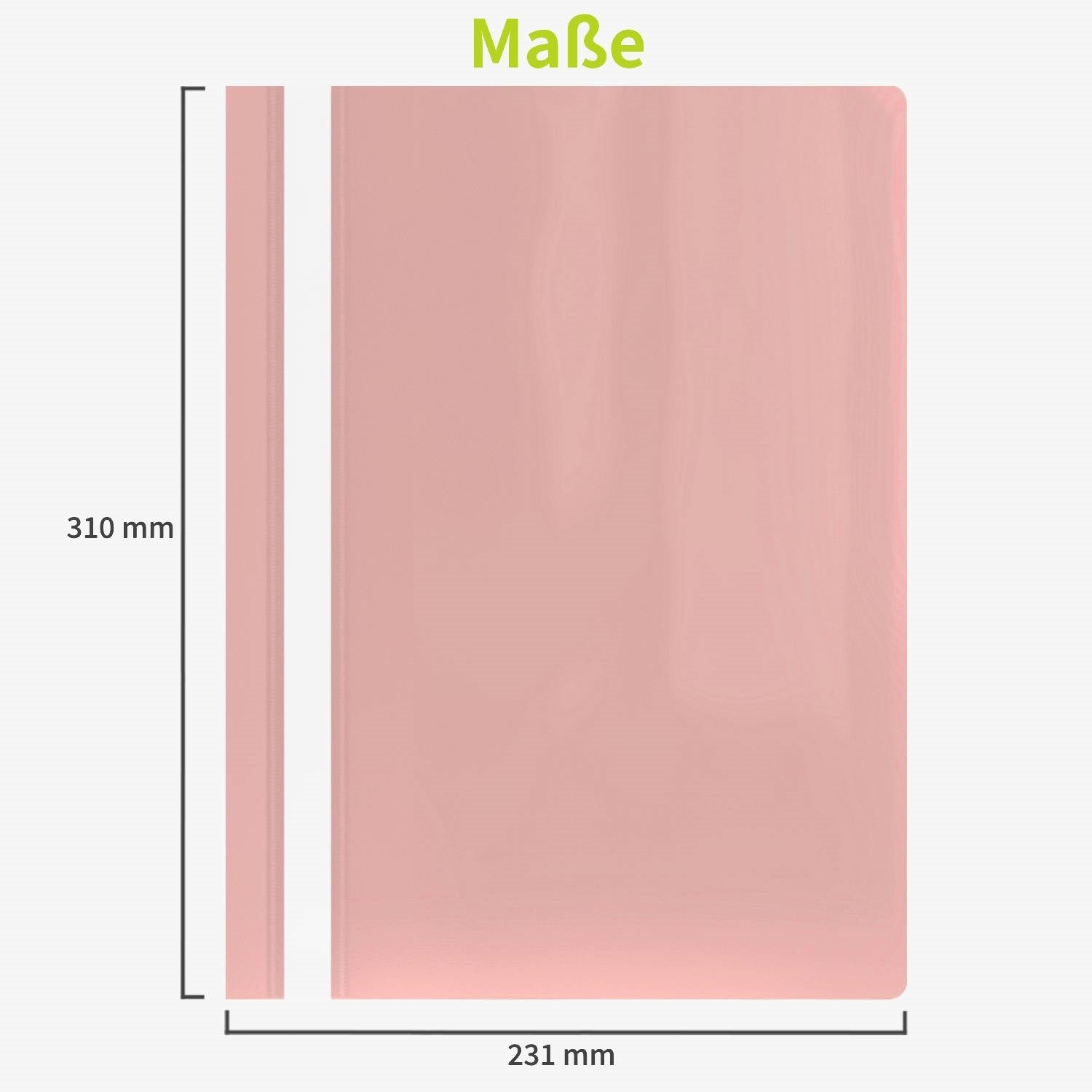 Set mit 10 leichten A4-PP-Berichtsmappen mit transparenter Vorderseite, pastellrosafarbener Rückseite und einer Kapazität von 70 Blatt.