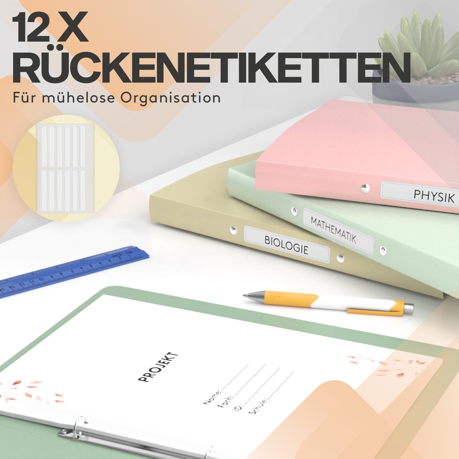 | Rückenschilder | 12× abziehbar (15 × 95 mm) |