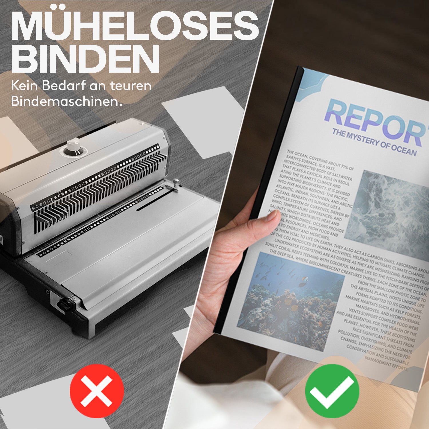 Mit der ACROPAQ Bindeset können Sie schnell und einfach Dokumente binden, ohne eine Bindemaschine zu benötigen.