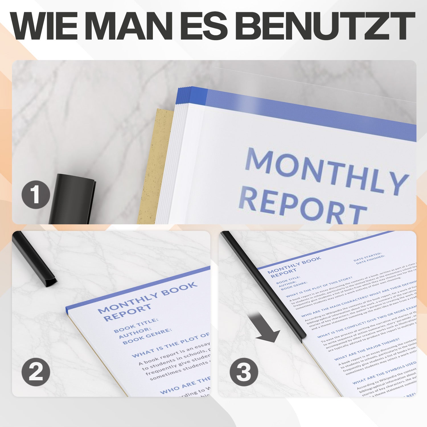 Dokumente können schnell und einfach ohne Perforieren oder Kleben gebunden werden.